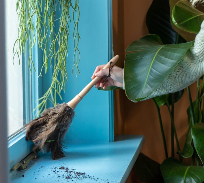 En dammvippa där de enskilda fjädrarna avlägsnar dammet utan att störa eller skada något föremål.