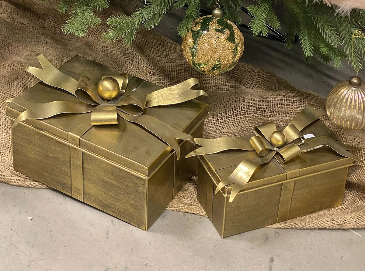 Fin förvaringslåda med rosett Färg: Mässing Material: Metall Finns i två storlekar