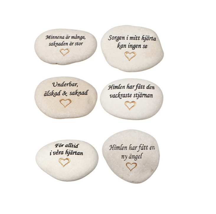 Dekorationssten lämplig till graven – finns med olika graverade texter